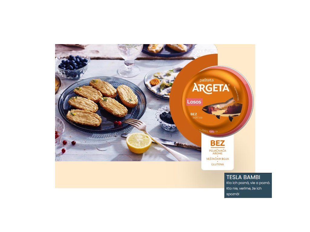 - varené LOSOSOVÉ mäso 32%, voda, rastlinný olej (slnečnicový, repkový a sójový v rôznom pomere), MLIEČNY proteín 3%, zemiakový škrob, cibuľa, koncentrovaný RYBIE vývar, SÓJOVÁ múka, jedlá soľ, korenie, kvasnicový extrakt, paprikový extrakt, dymová aróma.