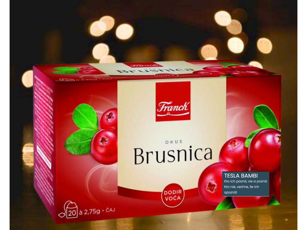 "Čaj" je jeden z najobľúbenejších nápojov na svete. "BRUSNICOVÝ" od "Franck" je jeden z NAJchutnejších ovocno-bylinných čajov a je veľmi obľúbený. Chutí osviežujúco i bez ochutenia a oplatí sa ho doma kedykoľvek mať. Vynikajúci je počas celého roka a pije sa teplý i chladený.
