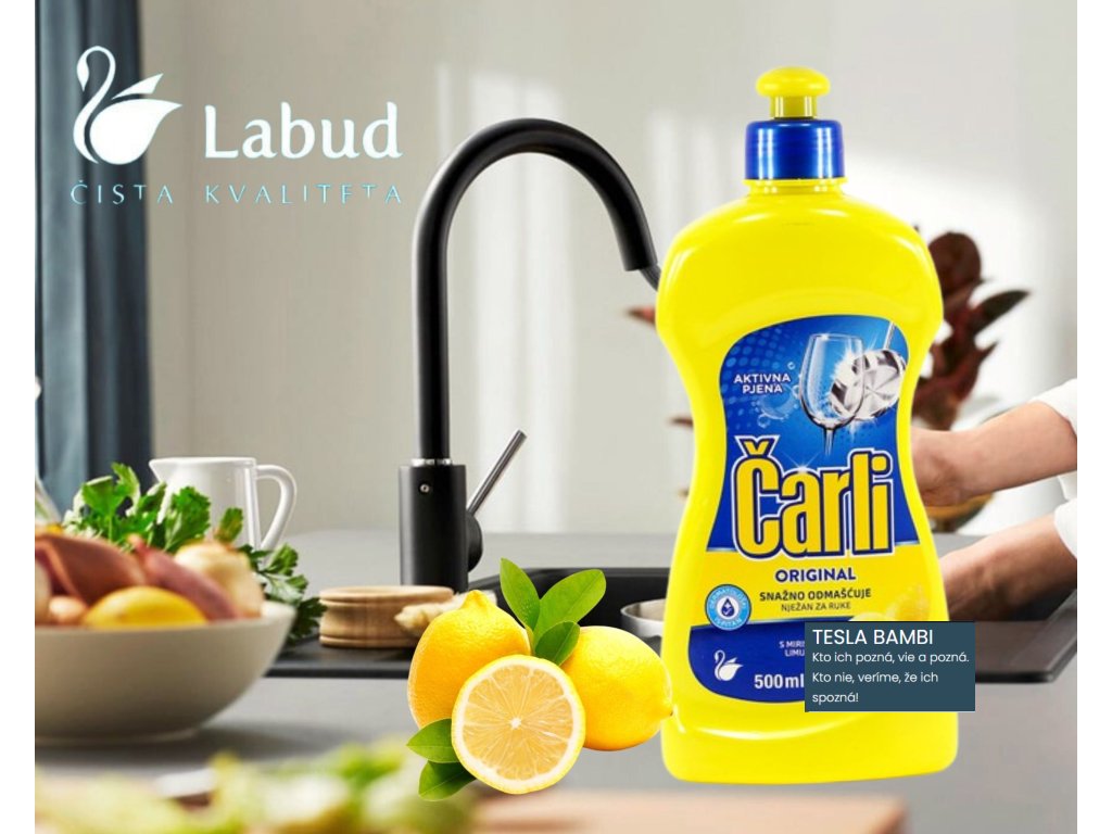 Čarli Original s vôňou citrónu je prvý a najstarší chorvátsky prostriedok na ručné umývanie riadu, ktorý vznikol už v roku 1974. Jeho unikátne zloženie a bohatá aktívna pena účinne odstraňujú mastnotu a nečistoty zo všetkých typov riadu a zároveň sa starajú o vaše ruky. Vďaka špeciálnej receptúre na sušenie bez stôp po kvapkách nie je po umytí potrebné utieranie.