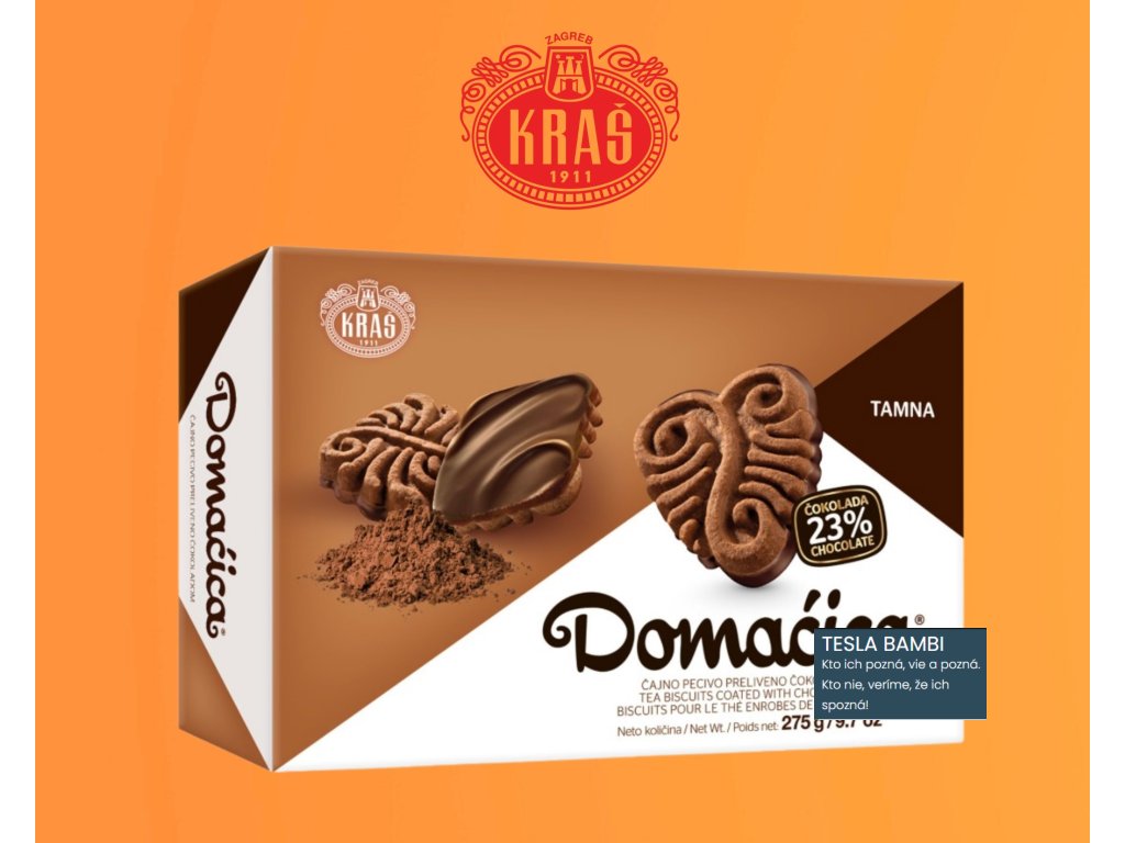 Domaćica KRAŠ tmavá - čajové pečivo polomáčané v čokoláde 275 g