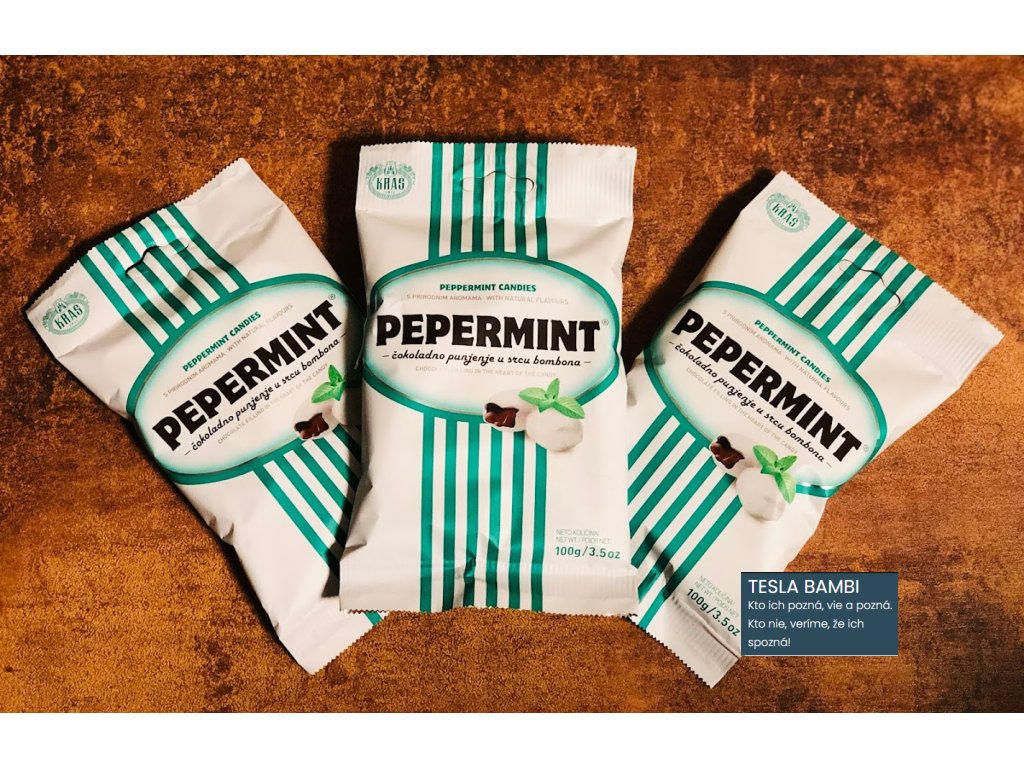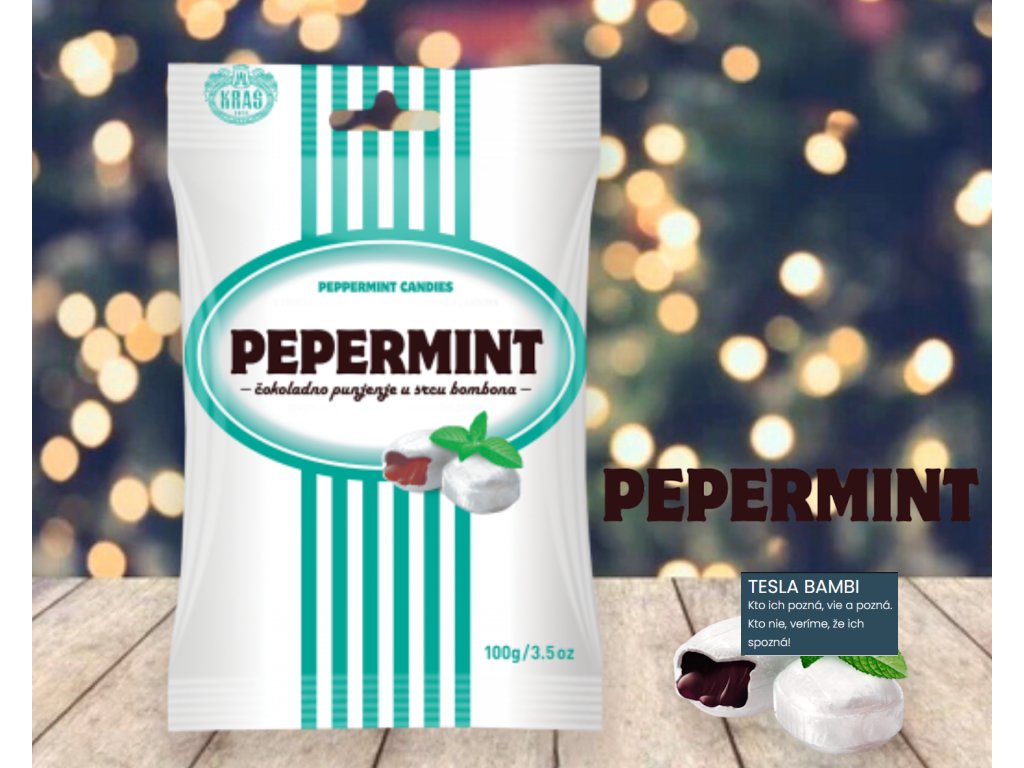 Kraš cukríky Pepermint 100g - chuť čokolády a mäty vo vnútri bonbónu