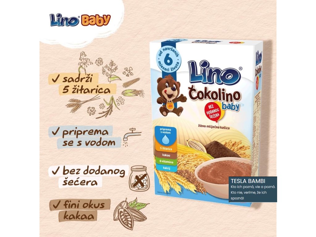 Čokolino Baby je nová obilninová mliečna kaša z rodiny lino, prvé Čokolino pre vašich najmenších!
