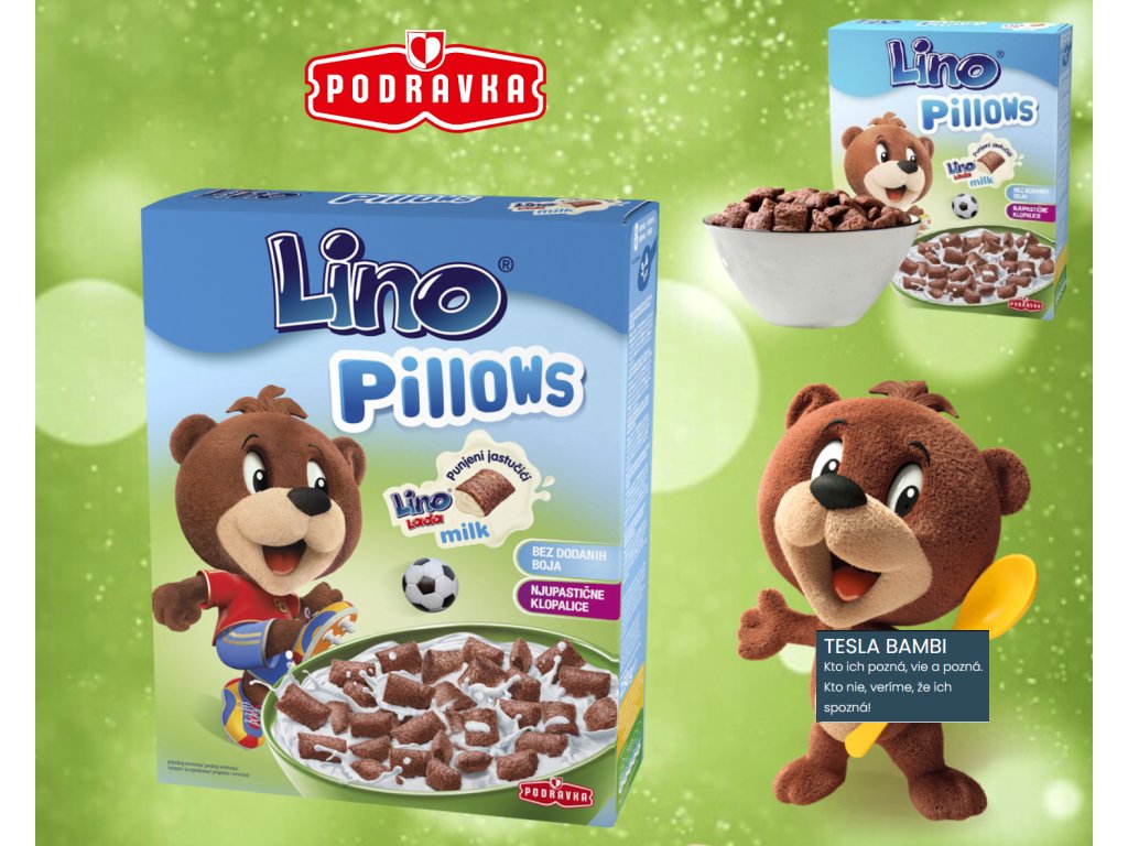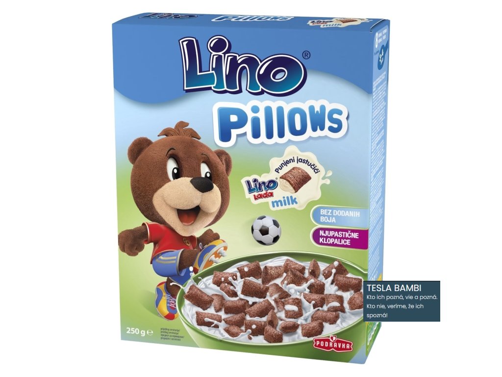 Cereálne VANKÚŠIKY plnené najjemnejším mliekom, Lino Ladou a s lieskovcami. Zvonku zvodné kakao a zvnútra jemná mliečna lieskovo-oriešková Lino Lada. Obľúbená a chutná maškrta, ktorá zasýti i osladí. Ideálny zdroj vápnika i energie hlavne pre naše malé, veľké detičky i všetky mlsné jazýčky. Lino Pillows sa oplatí doma mať, kedykoľvek hlad zažehnať či iba tak si pochutnať.