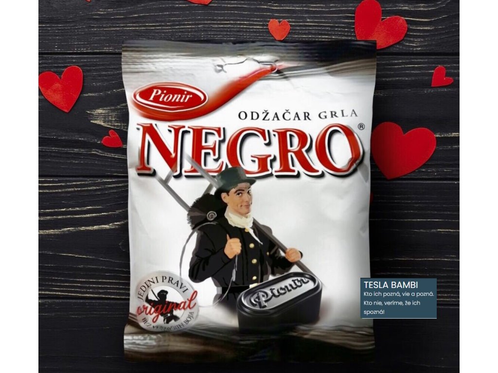 Negro je dokonalá sviežosť a extra chuť mäty a sladkého drievka v každom jednom cukríku. Jeden z najobľúbenejších cukríkov tohoto typu na celom Balkáne. Cukrík Negro je čierny ako kominár, ktorý vám prečistí hrdlo a vždy spríjemní vašu chuť. Je to vlajková loď srbského výrobcu Pionir a cukríky prišli na trh v r. 1920. Chutia do dnes a chutia rovnako výborne. Vrelo vám ich odporúčame.