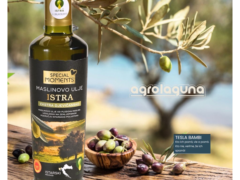 - Olivový olej z plodov olív pestovaných v zemepisnej oblasti Istrijského polostrova. Istrijský výrobok. Studený proces. Vysokokvalitný olivový olej získaný priamo z plodov olív výlučne mechanickými postupmi.