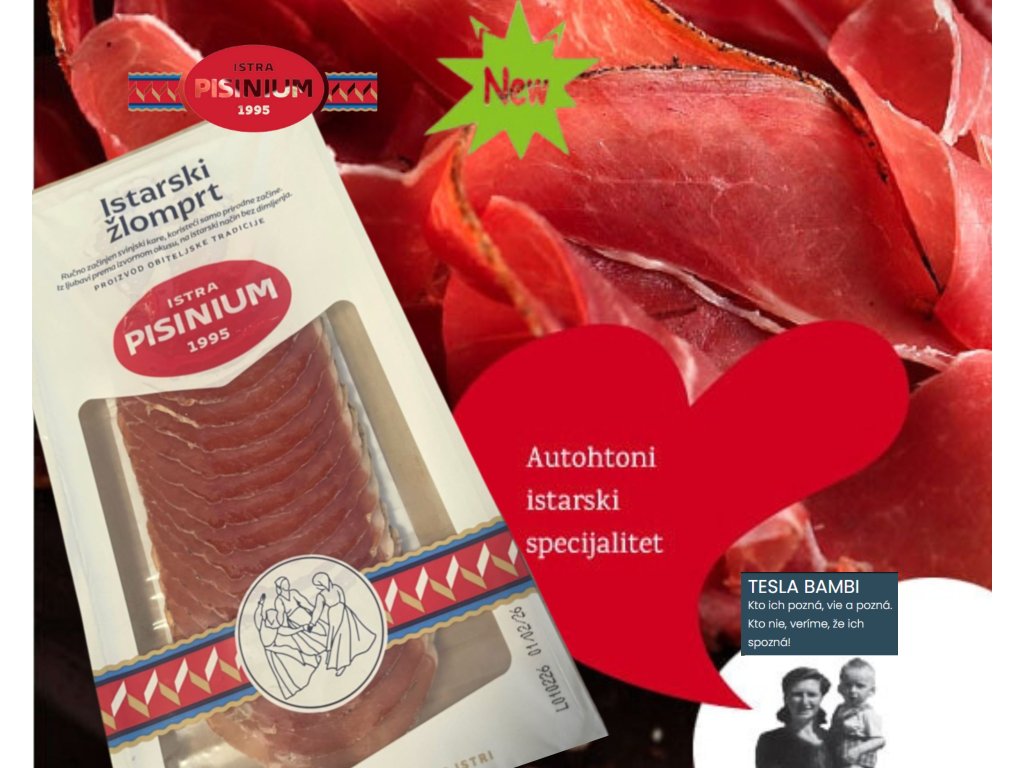 Istrijský žlomprt je sušená bravčová pečenica z karea – bez kosti, bez kože, len čisté, kvalitné mäso. Každých 100 g vzniká zo 178 g čerstvých svinčích leňov a slabín. Výsledkom je koncentrovaná chuť, ktorá si získa aj najnáročnejších gurmánov.