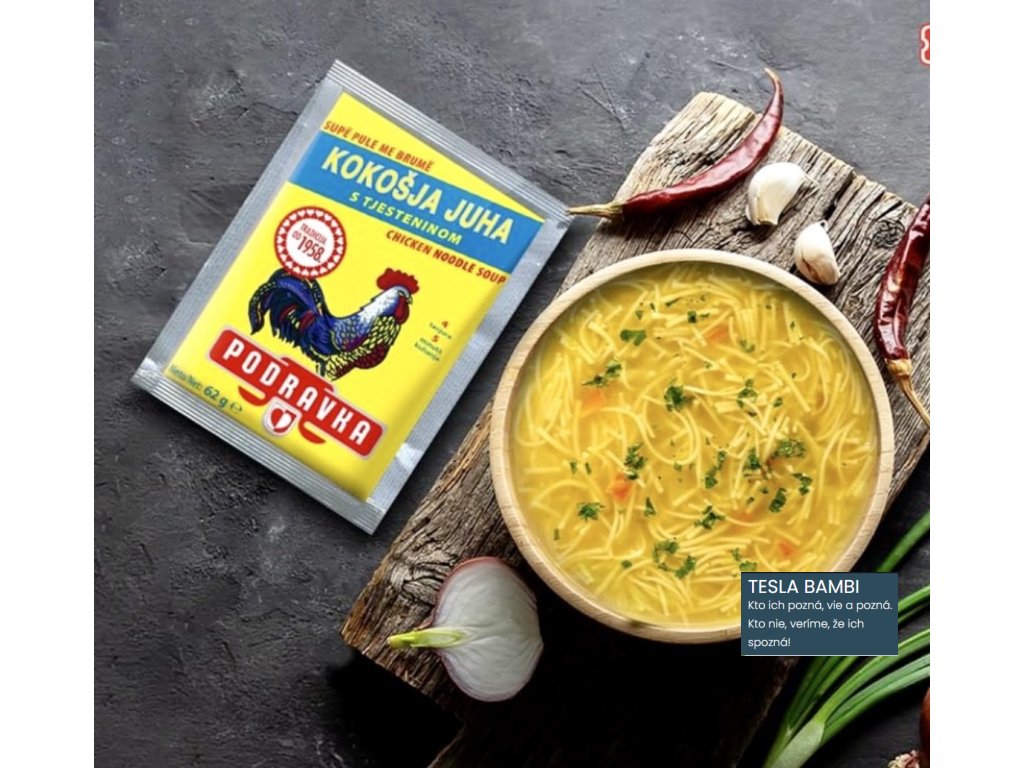 Kohútia polievka Podravka s cestovinami podľa originálnej receptúry.