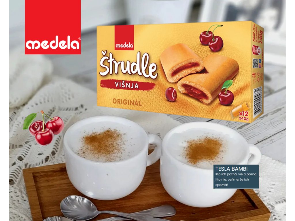 Štrudle Višňa - jemné BISKVIT sušienky Medela s višňovou náplňou - 240 g.