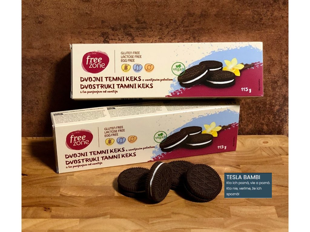 VEGAN Free Zone Double tmavá sušienka bez lepku a bez laktózy s vanilkovou náplňou 115 g